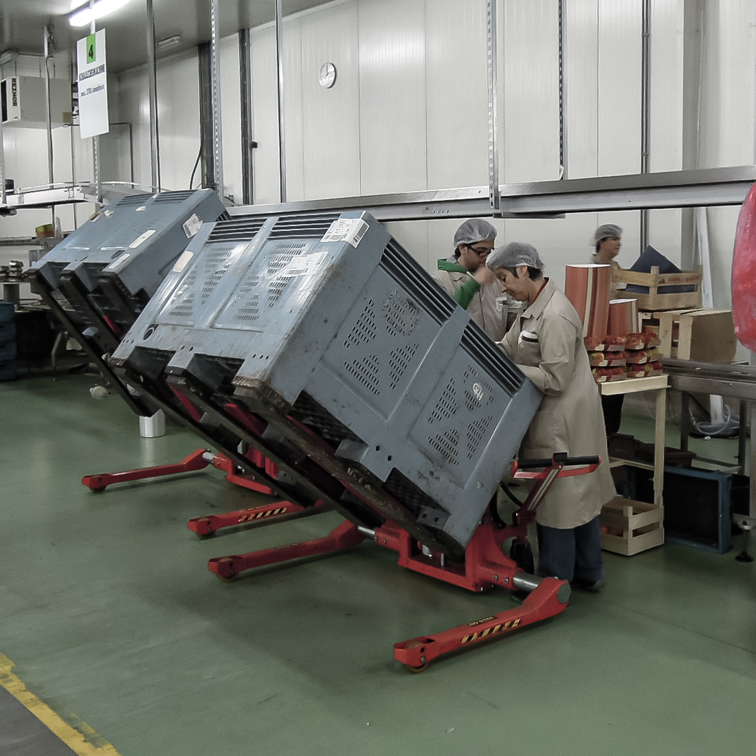 倾斜搬运车在设计上着重考虑用户的使用安全,为其创造人性化的工作条件。倾斜搬运车可以把箱体、框体倾斜90度,于是用户不需要弯腰伸背去取容器底部的物料。该设备同样适用于坐着或者站立工作的用户。
