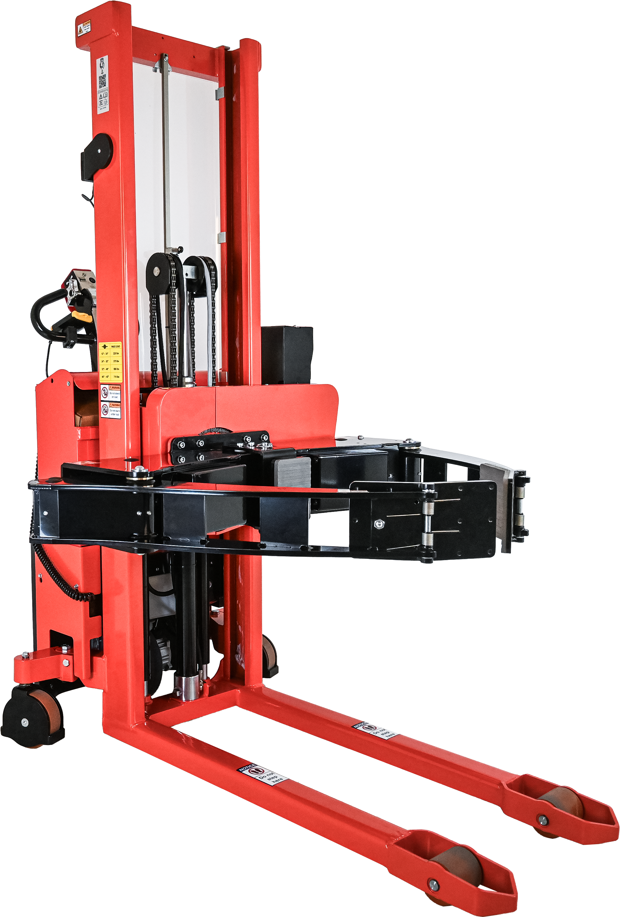 - 只有把卷轴抬升到825mm以上才可以进行翻转,这样动臂抓具就不会触到地面或叉脚。